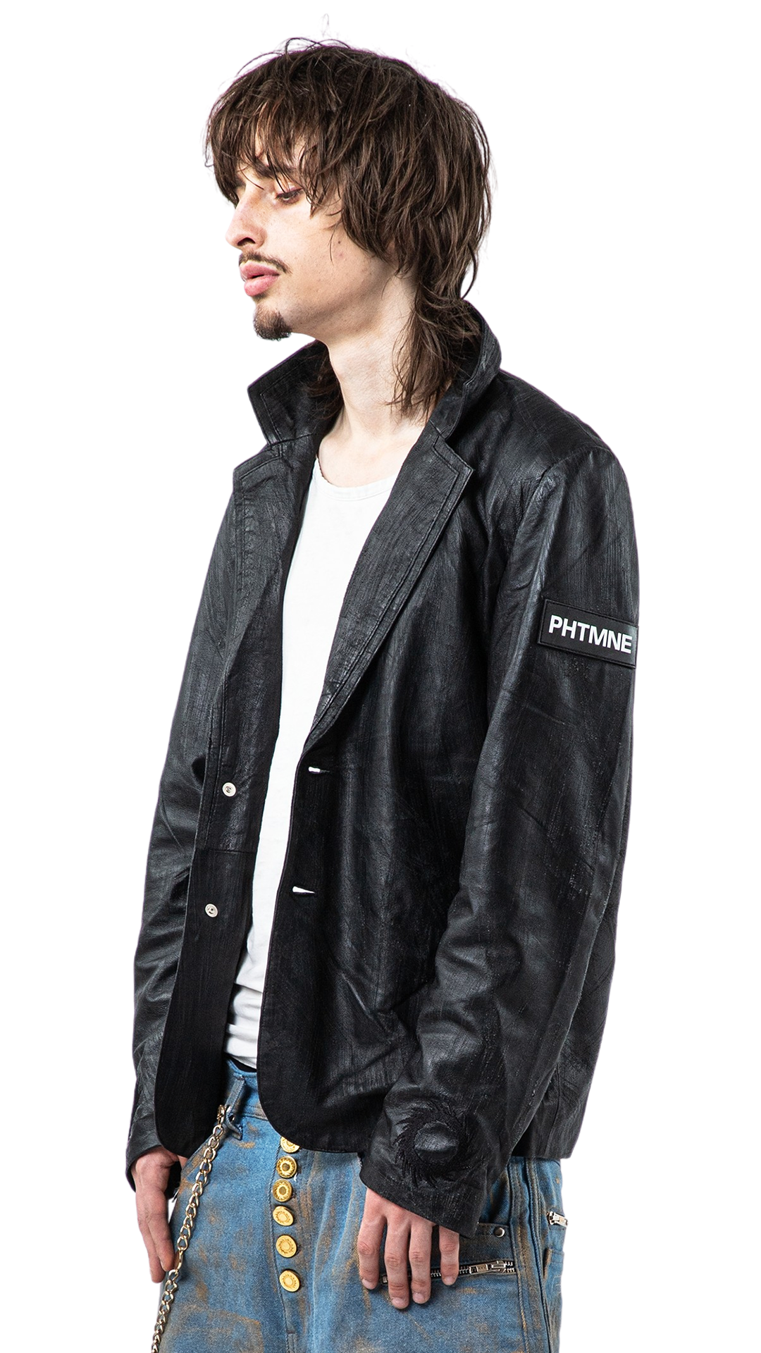 Hand‑distressed surface with controlled scratchwork and precision stitchwork make every panel singular.