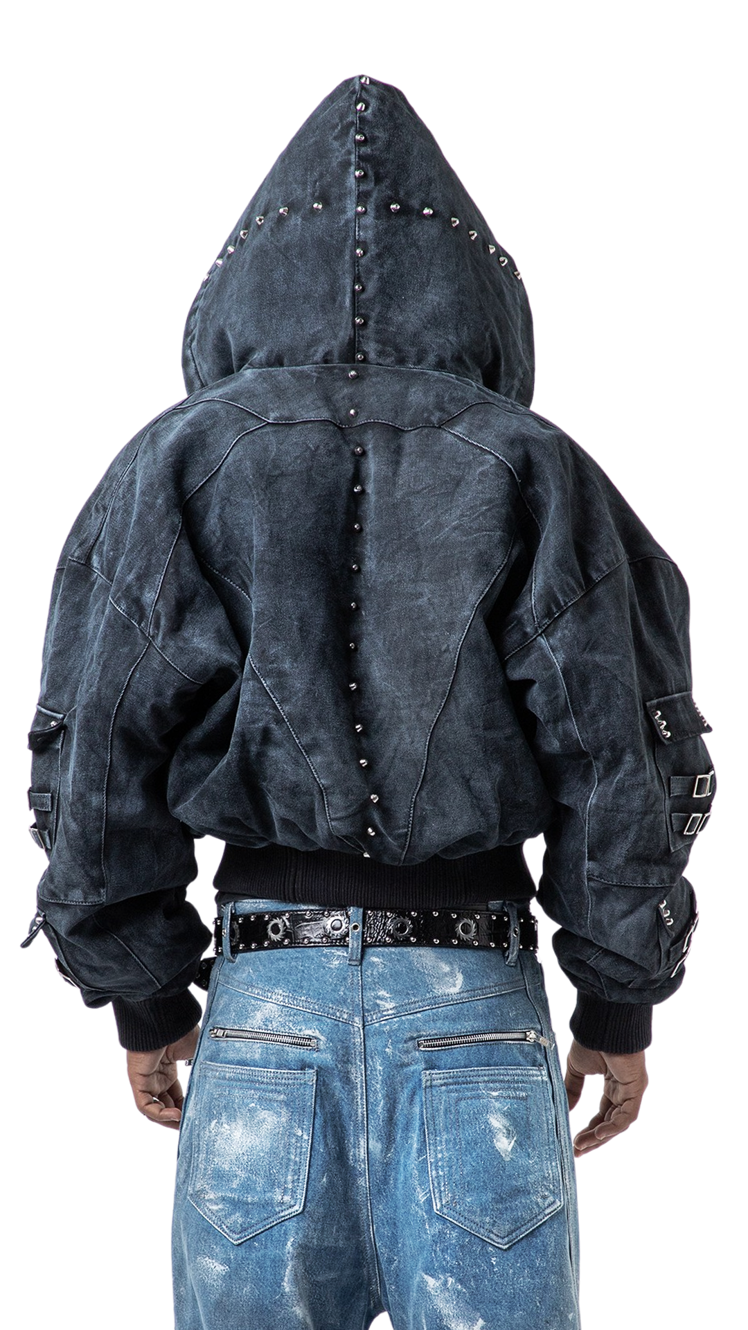 Inside, a silk-lined interior offers a layer of luxury. Four external pockets and an oversized hood fuse utility with brutal elegance.
